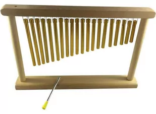 Powieszone są one wewnątrz drewnianej ramki. Do zestawu dołączona jest stalowa pałeczka. ➡️ Chimesy CH-20 nie wymagają dodatkowego statywu, gdyż drewniana ramka jest stabilna i z łatwością można postawić ją na płaskiej powierzchni, wziąć do ręki pałeczkę i cieszyć się pięknym dźwiękiem. Specyfikacja: ✔️ szerokość ramki - 39 cm ✔️ wysokość ramki - 26 cm ✔️ ilość prętów - 20 ✔️ długość prętów - 7-16,5 cm ✔️ kolor - złoty ✔️ długość pałeczki - 11,5 cm