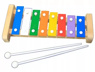 Dzwonki diatoniczne - 8 tonowe - Kaja - pałeczki w komplecie Dzwonki diatoniczne 8 tonowe 8 stalowych sztabek malowanych proszkowo Drewniana ramka Podkładki pod sztabkami z delikatnej gąbki W komplecie para pałeczek z tworzywa sztucznego Idealne dla najmłodszych jako zabawka edukacyjna Polska produkcja