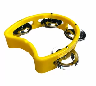Tamburyn półksiężyc - żółty - tworzywo sztuczne - 4 pary dzwonków Świetny tamburyn, głośny i fajnie brzmiący. Obręcz instrumentu wykonana jest z tworzywa sztucznego. Tamburyn posiada 4 pary blaszek ze stali. Tamburyn jest świetnym instrumentem perkusyjnym, który przyda się zarówno perkusistom jak również wokalistom. Jest to również świetny instrument edukacyjny.