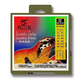 ⭐ Struny do gitary akustycznej Spock SA66 kolorowe 11-52 Przeznaczone przede wszystkim dla najmłodszych adeptów gitary Struny do akustyka Spock SA66 są przede wszystkim przeznaczone dla najmłodszych adeptów gitary. Każda struna jest innego koloru, dzięki czemu dzieci szybciej zapamiętują nazwy kolejnych strun i łatwiej odnajdują się na gryfie. Wykonane ze stali wysokowęglowej z owijką z odpowiedniego stopu miedzi Struny zbudowane są ze stali wysokowęglowej, a owijka wykonana jest z odpowiedniego stopu miedzi. Dzięki temu struny brzmią bardzo przyjemnie i żywo. Pakowane w osobne folie dla łatwego rozpoznawania Dla ułatwienia, każda struna z kompletu pakowana jest w osobną folię, która jest podpisana, co ułatwia rozpoznanie i zamontowanie ich na instrumencie.
