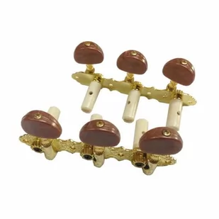 ⭐ Komplet kluczy do gitary klasycznej Jeremi MGP18 Precyzja i elegancja Komplet kluczy do gitary klasycznej Jeremi MGP18 to doskonały wybór dla każdego, kto szuka precyzyjnych i eleganckich maszynek stroikowych do klasyka. Zapewnij precyzyjny i elegancki stroik gitary klasycznej Dobrze wykonane klucze z łatwością trzymają strój w gitarze klasycznej i są precyzyjne. Trzpienie na struny oraz końcówki kluczy wykonano z trwałego tworzywa, a szyny oraz elementy ruchome z metalu malowanego na złoty kolor. Główki kluczy mają piękny perłowo-brązowy kolor, dodając elegancji. Pasują do większości gitar klasycznych i guitalele Klucze MGP18 pasują do większości gitar klasycznych w każdym rozmiarze oraz do guitalele.