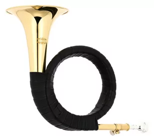 Róg myśliwski Fürst Pless Strój: Bb Średnica mosiężny roztrąb: 125 mm Korpus z mosiądzu pokryty skajem Ustnik w zestawie Pokrowiec w zestawie