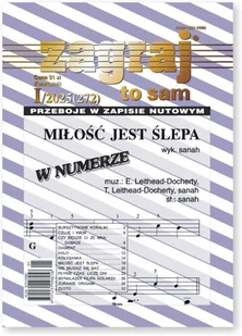 Książka nowa 36 stron Format A4 Nuty na keyboard (tzw. pryma czyli linia melodyczna zapisana na jednej pięciolinii dla prawej ręki z podpisanymi symbolami akordów dla lewej ręki) Dodatkowo tekst z nadpisanymi symbolami akordów + diagramy akordów klawiszowych i gitarowych Spis utworów: BURSZTYNOWE KORALIKI - Pan Savyan, Julia Kamińska CZUJĘ I WIEM - Stachursky CZY BĘDZIE CI ZE MNĄ DOBRZE - Lucyna Owsińska DIAMENT - Zalia HALO - Dawid Podsiadło KOŁYSANKA - Perfect i Patrycja Markowska MIŁOŚĆ JEST ŚLEPA - Sanah NIE MUSISZ SIĘ BAĆ - Oskar Cyms PŁYNIE CZAS, LICZĘ DNI (TA MELODIA GRA WE MNIE) - piosenka z filmu ANASTAZJA; wyk. Katarzyna Skrzynecka WYNALAZEK FILIPA GOLARZA - piosenka z filmu KLEKS I WYNALAZEK FILIPA GOLARZA; wyk. Sobel, sanah, Kleks ŻURAWIE ORIGAMI - Mela Koteluk ZŁOTO - Roztańczona Reprezentacja (Defis, Łobuzy, Marcin Miller, MiłyPan, Radek Liszewski, MIG, Skolim, Sławomir, Zenek Martyniuk, Magda Narożna)
