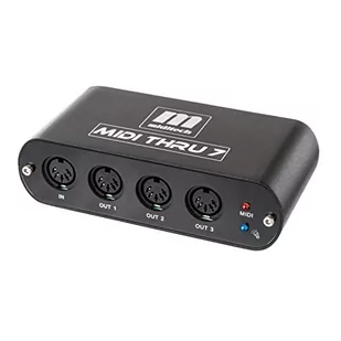 Interfejs MIDI THRU 7 to skrzynka MIDI Thru, która zwielokrotnia przychodzący sygnał MIDI do maksymalnie 7 portów MIDI Out. Aby zasilić MIDI Thru 7, potrzebujesz opcjonalnego adaptera USB DC. W obecnej wersji 2 zwiększyliśmy stabilność i niezawodność transmisji danych.