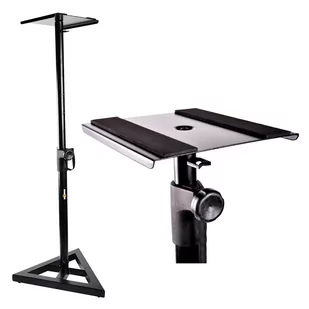 Opis produktu: STAND4me MON 1 to solidny, profesjonalny statyw pod monitory studyjne. Stojak w całości wykonany został ze stali pomalowanej proszkowo na kolor czarny. Dolna podstawa ma kształt trójkąta równobocznego. Posiada dokręcane, antypoślizgowe nóżki umożliwiające wypoziomowanie całego statywu.