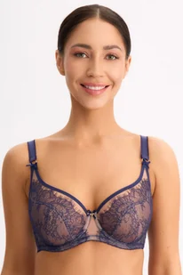 Półusztywniany biustonosz Bella Misteria 64-147 Magiczny Szafir łączy stabilne podtrzymanie z miękkim wykończeniem miseczek. Konstrukcja na fiszbinach wspiera biust, a pionowe fiszbiny boczne pomagają utrzymać obwód na miejscu. Dolna część miseczek jest lekko usztywniona dla lepszej stabilizacji i kształtu, górna wykonana z delikatnej siateczki z koronkowym wykończeniem. Regulowane, nieodpinane ramiączka pozwalają dopasować biustonosz do sylwetki. Zapięcie na haftki z tyłu ułatwia codzienne użytkowanie i zapewnia pewne trzymanie.