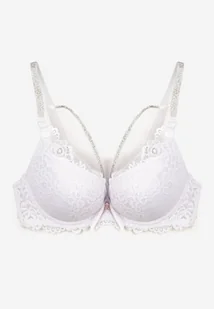 Biały Biustonosz Koronkowy Push-Up z Ozdobnymi Cyrkoniami Hevantia