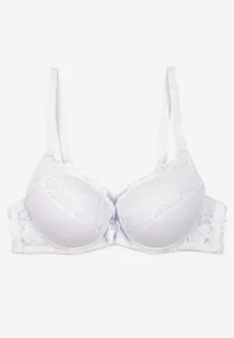 Biały Biustonosz Push Up z Koronkowym Wzorem Lanovinea