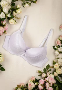 Biały Koronkowy Biustonosz Push Up w Kropki Frees