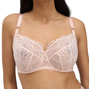 Jak zapnę biustonosz? Na zapięcie biustonosza składają się trzyrzędowe haftki w konfiguracji 3x3, tak byś mogła dobrać obwód w zależności od potrzeby. Trójstopniowe regulowanie obwodu to po prostu wygoda. Jaki kolor ma biustonosz? Delikatny odcień jasnego różu i bieli wykończony subtelnym blaskiem. Co wyróżnia ten model? Biustonosz wykonany z cudownej i delikatnej koronki przez polską markę. Dla kogo ten biustonosz będzie idealny? Biustonosz sprawdzi się idealnie na średnim i dużym biuście.
