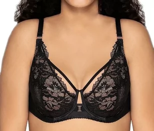 Biustonosz typu soft z delikatnej siateczki z koronką. Wewnętrzna strona podszyta beżową siateczką, miękkie miseczki z fiszbinami. Regulowane, nieodpinane ramiączka. Skład: 60% poliamid, 16% poliester, 10% bawełna, 7% elastan, 7% inne.