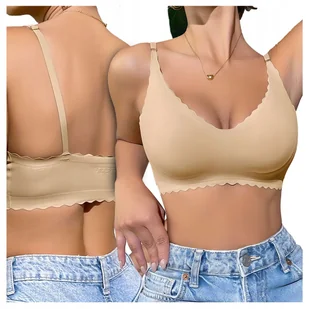 BIUSTONOSZ BEZSZWOWY Stanik Bez Zapięcia Haftek na Prezent Niewidoczny Beż Stanik modelujący biust bez zapięcia Beżowy Stanik Bezszwowy Damski! ⭐⭐⭐⭐⭐ ✔️ Bez zapięcia z tyłu, zakładany przez głowę. ✔️ Z regulowanymi ramiączkami. ✔️ Wyjmowane wkładki. ✔️ Niewidoczny pod ubraniami. ✔️ Wykończony elegancką falbanką (koronką).