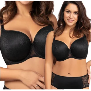 Jak zapnę biustonosz? Na zapięcie biustonosza składają się dwurzędowe haftki w konfiguracji 2x3, tak byś mogła dobrać obwód w zależności od potrzeby. Trójstopniowe regulowanie obwodu to po prostu wygoda. W zależności od miski, dostępne jest także rozwiązanie z haftkami 3x3. Jaka jest kolorystyka biustonosza? Klasyczna czerń. Co wyróżnia ten model? Otulająca piersi tkanina, idealne wykonanie i po prostu genialna konstrukcja.