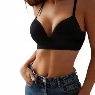 Biustonosz damski bez fiszbin push up bezszwowy prążkowany M/L czarny ‼️ UWAGA: Na metce jest zaznaczony rozmiar L/XL, ale w rzeczywistości rozmiar bardziej pasuje na M/L ‼️