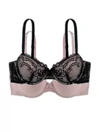 Elegancki, a zarazem praktyczny biustonosz do karmienia, zachowany w różowo-czarnej kolorystyce. Posiada miękkie miski na fiszbinach, wnętrze podszyte jest bawełną. Ramiączka regulowane z zapięciem Clic-Clack. Do kompletu spodenki zachowane w tej samej kolorystyce.