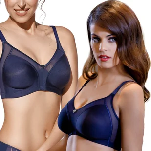 Biustonosz miękki soft granatowy Estala to gładki model bez fiszbin, wykonany z dwuwarstwowej, elastycznej mikrofibry i subtelnego tiulu. Miękkie miseczki zapewniają naturalny wygląd i wygodę, a brak fiszbin dodatkowo zwiększa komfort noszenia. Regulowane ramiączka i zapięcie z dużą możliwością regulacji. Idealny na co dzień, niewidoczny pod ubraniem.