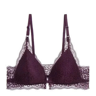 Biustonosz koronkowy push-up zapinany z przodu - Bordowy A / 36 A / 36