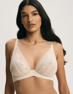 Biustonosz miękki FREYJA Esotiq | beżowy Miękki biustonosz FREYJA w beżowym odcieniu łączy subtelną estetykę z wygodą na co dzień. Delikatna koronka o roślinnym rysunku miękko układa się na biuście, podkreślając jego naturalny kształt i tworząc elegancką, lekką linię dekoltu. Konstrukcja bez usztywnień zapewnia swobodę noszenia, a elastyczne materiały dobrze dopasowują się do sylwetki. Gładkie skrzydełka z poliamidu stabilizują obwód, zachowując przy tym dyskretny wygląd pod ubraniem. To propozycja dla kobiet, które cenią komfort, naturalność i kobiecą prostotę w dopracowanym wydaniu.