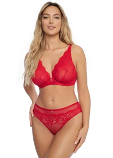 Biustonosz miękki Ilya to propozycja dla kobiet, które szczególnie cenią sobie delikatne podtrzymanie piersi i otulenie ich materiałem. Miękki biustonosz z koronką to połączenie wygody z szykiem. Wyróżnia się charakterystycznymi zaszewkami i ozdobnym cięciem na miseczce. Na skrzydełkach i na mostku umieściliśmy przezierną koronkę, która zachwyci Cię zmysłowością. miękki czerwony biustonosz przezierna siateczka na skrzydełkach i mostku odpowiedni również do głębokich dekoltów Skład materiału: