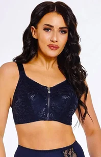 Biustonosz miękki soft zapinany z przodu granatowy Zuza 586 zaprojektowany z myślą o komforcie i wygodzie użytkowania. Zapięcie z przodu na suwak znacząco ułatwia zakładanie i zdejmowanie. Dla pełnego komfortu, suwak od spodu posiada podszycie, które chroni ciało przed otarciami i zapewnia przyjemne dopasowanie. Tył biustonosza wykonano z gładkiego, jednolitego materiału, który zapewnia estetyczny wygląd i komfort, idealnie dopasowując się do sylwetki. Miękka konstrukcja biustonosza bez fiszbin zapewnia komfort noszenia przez cały dzień, jednocześnie delikatnie podkreślając naturalny kształ