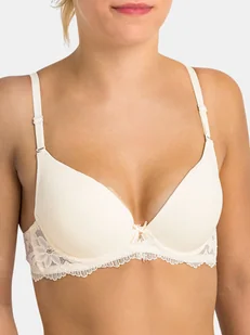 Biustonosz młodzieżowy ecru 34A Biustonosz młodzieżowy- elegancję i komfort w jednym! ? Przedstawiamy biustonosz młodzieżowy, który łączy w sobie styl, wygodę i wyjątkowy design! ? Dzięki gładkim miseczkom i subtelnemu koronkowemu pasowi, ten biustonosz jest idealnym wyborem na co dzień oraz do szkoły. Kwiatowa koronka dodaje mu romantycznego charakteru, a usztywnione miseczki delikatnie podtrzymują biust, zachowując jego naturalny kształt. Komfort noszenia zapewniają regulowane ramiączka z możliwością odpięcia oraz trzystopniowe zapięcie na haftki na tyle, pozwalające na perfekcyjne dopasowanie do sylwetki. Wyróżnia go również urocza kokardka i błyszcząca zawieszka na mostku, które nadają całości niepowtarzalnego uroku! ✨ Ten elegancki biustonosz dostępny jest w kilku kolorach, dzięki czemu młode fashionistki mogą wybierać wedle własnych upodobań. Jest to doskonały wybór zarówno na codzienne wyzwania, jak i na specjalne okazje.
