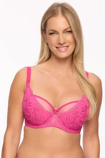 Elegancki biustonosz półusztywniany. górna część miseczki wykonana jest z siateczkimiseczki oraz mostek pokryte są piękną koronkąmiędzy miseczkami kokardka z przywieszkąozdobne, koronkowe wyjście na ramiączkopogłębione miseczki, idealnie podtrzymują biustramiączka regulowane, nieodpinane, różnej szerokości dostosowanej do rozmiaruozdobne kokardkipionowe fiszbiny bocznezapinany na dwie lub trzy haftki z trzystopniową regulacjątył wykonany jest z elastycznego materiałukonstrukcja SS10Do kompletu polecamy figi 1134 lub brazyliany 1135. Skład: 57% Poliamid, 18% Bawełna, 10% Elastan, 10% Poliester, 5