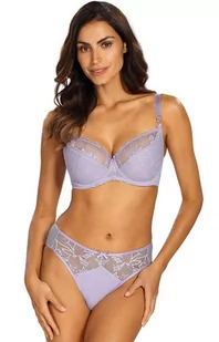 Biustonosz półusztywniany semi-soft fioletowy Bonita B150 posiada fiszbiny dla dodatkowego wsparcia. Średniej wysokości mostek biustonosza zapewnia stabilność i równomierny rozkład ciężaru piersi. Miseczki wykonane z pianki, dają efekt delikatnego uniesienia i kształtu. Na piankę nałożony został haft w kwiatowy wzór, a następnie specjalna folia, która sprawia, że haft pięknie mieni się w świetle. Brak fiszbiny bocznej sprawia, że biustonosz jest jeszcze bardziej komfortowy i nie krępuje ruchów.