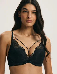 Biustonosz push-up AURORA Esotiq | czarny Model AURORA w klasycznej czerni to połączenie wyrafinowanej koronki z delikatną, gładką mikrofibrą o subtelnym połysku. Miseczki push-up efektownie unoszą i modelują biust, podkreślając dekolt oraz nadając sylwetce kobiece proporcje. Roślinny motyw koronki dodaje lekkości, a jednocześnie przyciąga wzrok dopracowanym detalem. Gładki obwód harmonijnie współgra z ażurową strukturą miseczek, tworząc elegancki kontrast. Ozdobne paseczki nad linią dekoltu oraz subtelny, przesuwany element biżuteryjny w centralnej części nadają całości nowoczesnego charakteru.