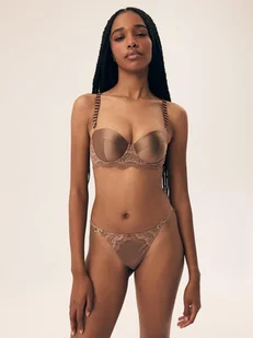 Biustonosz push-up Brillant Esotiq w odcieniu złotego brązu to idealna kombinacja komfortu i luksusu. Bawełniane wyściełanie miseczek zapewnia miękkość i wyg...