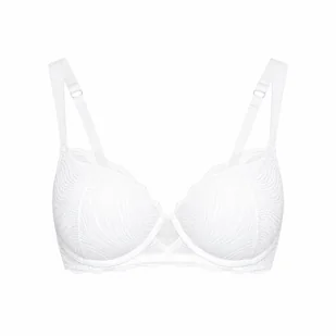 Biustonosz push-up CELEBRISY Esotiq | biały Biały biustonosz push-up Celebrisy to połączenie świeżej, jasnej estetyki z dopracowaną konstrukcją modelującą sylwetkę. Miseczki subtelnie unoszą i zaokrąglają biust, tworząc naturalnie wyglądający dekolt bez efektu przesady. Delikatny haft układa się miękką linią wzdłuż krawędzi, dodając całości lekkości i kobiecej elegancji, a niewielki, półtransparentny detal przy mostku wprowadza nowoczesny akcent. Gładkie, siateczkowe skrzydełka zapewniają komfort noszenia i estetyczne dopasowanie do ciała, dzięki czemu biustonosz dobrze sprawdza się także pod dopasowanymi ubraniami. Biel podkreśla czystość formy i sprawia, że model prezentuje się wyjątkowo świeżo i uniwersalnie – idealny zarówno na co dzień, jak i na specjalne okazje.