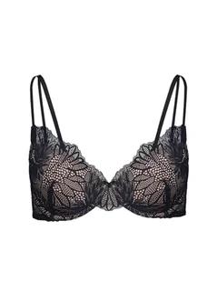 Koronkowe miski, boczki oraz bawet podkreślają dekoracyjny charakter bielizny, nie rezygnując z komfortu noszenia. Cechy biustonosz push-up z ażurowej koronki o kwiatowym wzorze fiszbiny wszyte w miseczki wyjmowane wkładki modelujące miski, boczki i bawet wykonane z koronki konstrukcja oparta na misce Kassidy regulowane ramiączka i klasyczne zapięcie z tyłu Skład koronka: 90% poliamid, 10% elastan siateczkowe skrzydełka: 89% poliester, 11% elastan wyścielenie miseczki: 100% poliester