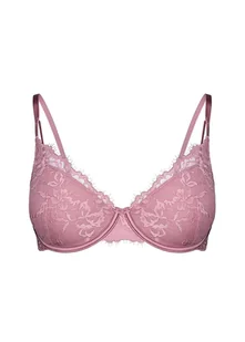 Biustonosz push-up CLOE Esotiq | różowy Biustonosz push-up CLOE w delikatnym, przygaszonym odcieniu różu łączy romantyczną estetykę z dopracowaną konstrukcją modelującą sylwetkę. Miseczki pokryte kwiatową koronką subtelnie eksponują biust, nadając całości lekkości i kobiecego charakteru. Wbudowany efekt push-up unosi i zbiera piersi ku środkowi, tworząc pełniejszy, harmonijny dekolt o naturalnym kształcie. Koronkowe detale płynnie przechodzą w gładki mostek, a delikatnie wykończone krawędzie podkreślają elegancką linię biustonosza. Półtransparentne elementy dodają zmysłowości, jednocześnie zachowując stabilność i komfort noszenia.