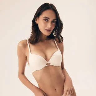 Podkreśl swoje atuty i dodaj sobie pewności siebie dzięki wyjątkowemu biustonoszowi push-up! Model Influensa został zaprojektowany z myślą o kobietach, które cenią sobie dobrze wymodelowany biust. naturalne podkreślenie dekoltu regulowane ramiączka ozdobne złote akcesorium w kształcie serduszka Skład materiału: Materiał wierzchni: 76% Poliamid 24% Elastan Siateczka: 86% Poliamid 14% Elastan Wyścielenie miseczki: