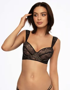 Biustonosz push-up Nikola zachwyci nawet najbardziej wymagające kobiety. Model push-up z wyjmowanymi wkładkami pozwala na dowolne modelowanie dekoltu. Kwiecista koronka w czarnym kolorze dodaje bieliźnie zmysłowego charakteru, a ozdobne ramiączka – elegancji. Biustonosz push-up Nikola jest przy tym bardzo wygodny – szeroki mostek i pas zapinany na 3 haftki ułatwia dopasowanie bielizny do sylwetki i podtrzymanie nawet dużego biustu.