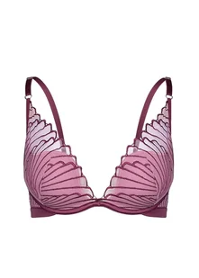 Biustonosz push-up NUGAT Esotiq | różowy Biustonosz push-up NUGAT w różowej odsłonie to połączenie subtelnej zmysłowości z dopracowaną konstrukcją. Półtransparentna baza delikatnie odsłania skórę, tworząc efekt lekkości, który podkreśla dekoracyjny haft o wachlarzowym motywie. Kontrastowe linie haftu nadają całości głębi i graficznego charakteru, elegancko modelując dekolt. Konstrukcja oparta na misce Claudia skutecznie unosi biust i kieruje go ku środkowi, zapewniając pełniejszy, harmonijny kształt. Smukły mostek dodaje lekkości, a elastyczne skrzydełka dopasowują się do sylwetki, dbając o komfort noszenia przez cały dzień.