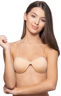 Materiałowy biustonosz samonośny w neutralnym odcieniu beżu. Model posiada doskonale wyprofilowane miseczki, pokryte od wewnątrz bezpiecznym dla skóry - a zarazem mocnym - silikonowym klejem. Dzięki temu biustonosz będzie się doskonale trzymać na właściwym miejscu. Dodatkowe zabezpieczenie stanowią silikonowe, odpinane paski, zapinane wokół szyi lub na plecach - w zależności od potrzeb czy danej kreacji. Miseczki biustonosza są zapinane na niewielką sprzączkę, aby dać Ci lepszy efekt push-up.