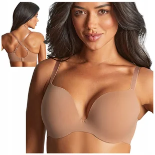Możesz skrzyżować ramiączka na plecach. Jak zapnę biustonosz? Na zapięcie biustonosza składają się dwurzędowe haftki w konfiguracji 2x3, tak byś mogła dobrać obwód w zależności od potrzeby. Trójstopniowe regulowanie obwodu to po prostu wygoda. Jaka jest kolorystyka biustonosza? Ciemny beż, odcień miodu. Co wyróżnia ten model? Majstersztyk w basicowym wydaniu.