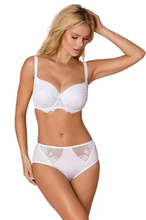 Typ:full cup – K1Opis:– biustonosz posiada dość głębokie, usztywniane miski, z jednym pionowym cięciem na misce,– wykonany z białej mikrofibry oraz włoskiego haftu od Ricamificio di Fagnano,– włoski haft znajduje się na misce oraz środku biustonosza,– obwód biustonosza wykonany z mikrofibry,– nie posiada fiszbiny bocznej,– między miseczkami ozdoba w formie kokardki,– nieodpinane, regulowane ramiączka,– do kompletu polecamy figi z nieco wyższym stanem.