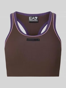 Biustonosz damski EA7 Emporio Armani;Mieszanka materiałów z dodatkiem streczu;Dopasowany krój;Prążkowane wykończenia;Dekolt w łódkę;Detal z logo;Długość tyłu w rozmiarze S: 19 cm