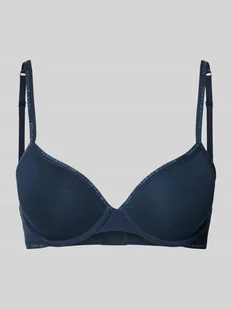 Biustonosz damski TOMMY HILFIGER;Efekt: jednolity kolor;Detale miseczki: wyprofilowane;Aplikacja: Z napisem z logo;Zapięcie: Zapięcie na haftkę;Ramiączka: wąskie ramiączka;Fiszbiny: z fiszbinami;Materiał: Mieszanka bawełny