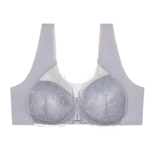 Biustonosz zapinany z przodu z koronką - Szary XXL