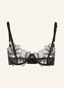 Trzystopniowa regulacja z tyłu przy pomocy dwóch haftek. Przezroczyste elementy boczne z siateczki. Przezroczyste wykonanie z delikatnymi haftami. Detale z marką na ramiączkach. Metalowe detale w złotym kolorze