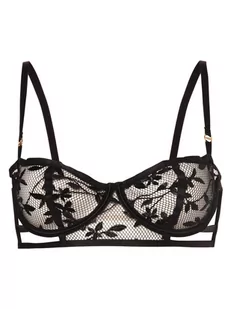 Siateczka zdobiona kwiatowym haftem i pas pod biustem w stylu uprzęży nadają biustonoszowi z fiszbinami Dana marki Bluebella uroczy wygląd.