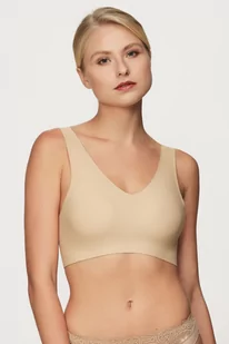 Bezszwowy biustonosz V-neck jest uzależniająco wygodny. Został uszyty z gładkiej mikrofibry, która jest niezwykle miękka w dotyku i zachowuje się na ciele jak druga skóra. Miseczki są cudownie miękkie i nie mają w ogóle fiszbinów. Wygodny model do noszenia w domu i do uprawiania lekkich dyscyplin sportowych. Biustonosz bez fiszbinów Bezszwowe wykonanie Krawędzie wycinane laserem Klejone lamówki / Klejone brzegi Klejone szwy Gładkie usztywniane miseczki Ramiączka bez regulacji długości Bez fiszbinów Wkładany przez głowę