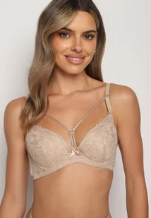 Ciemnobeżowy Biustonosz Koronkowy Typu Full Cup Nasna