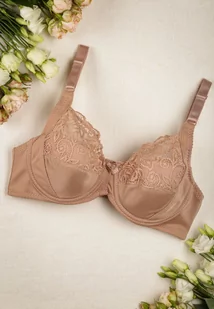 Ciemnobeżowy Klasyczny Biustonosz z Koronkowymi Wstawkami Alinva
