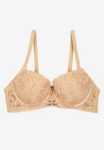 Ciemnobeżowy Koronkowy Biustonosz Typu Push Up z Regulowanymi Odpinanymi Ramiączkami Ilathwen