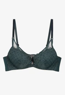 Ciemnozielony Biustonosz Koronkowy z Efektem Push-Up Donantia