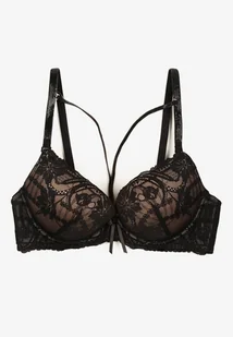 Czarno-Beżowy Biustonosz z Koronką i Ozdobnymi Paskami Korzedi