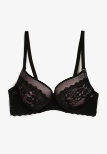 Czarno-Różowy Biustonosz Push-Up z Subtelną Koronką Alenmdra
